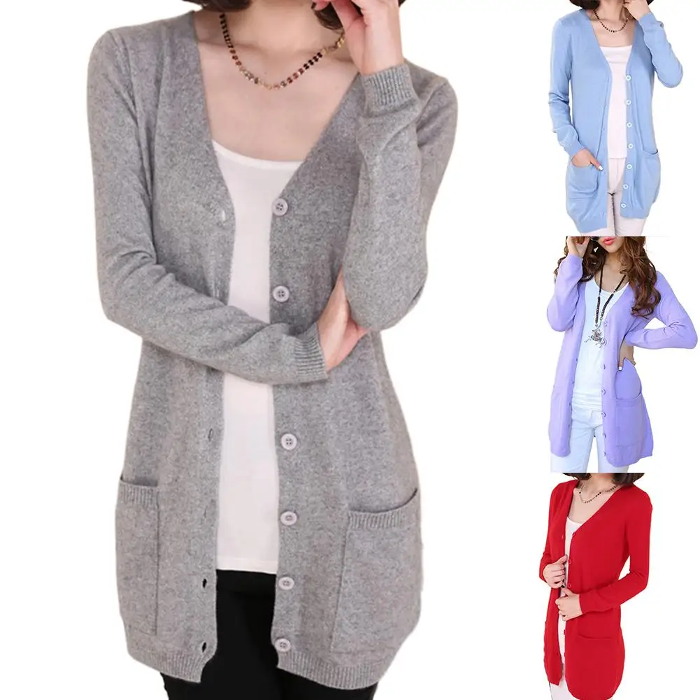 Name: De talla grande de las mujeres suéter de Otoño de manga larga de Color sólido cárdigan de botones Midi delgada de abrigo suelto suéter de punto prendas de vestir abrigo
